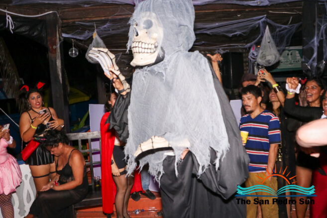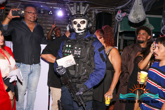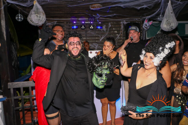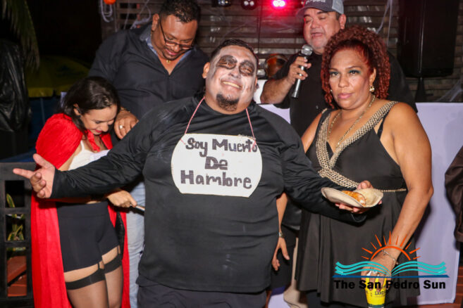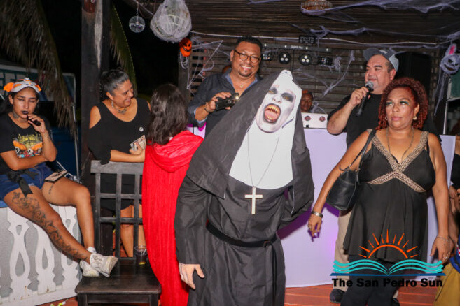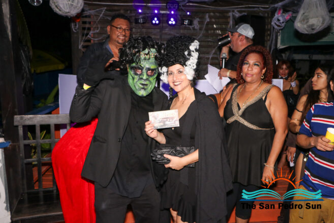 The night began with a lively parade of contestants, each showcasing elaborate and imaginative costumes to impress the audience and judges. Categories for the competition included Scariest, Crowd’s Favorite, Best Group, Best Makeup, Best On-Stage Performance, Holiday Hotel Manager’s Favorite, La San Pedrana Manager’s Favorite, Funniest, Lisa’s Favorite, Best Clown, Sexiest, Most Elegant, and Most Creative. Prizes ranged from the $1,000 cash award for the Most Creative Costume to private sailing adventures for twelve persons for the Best Group, along with Tropic Air flights, hotel stays, cases of Belikin beer, and numerous gift certificates.