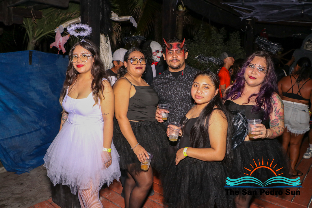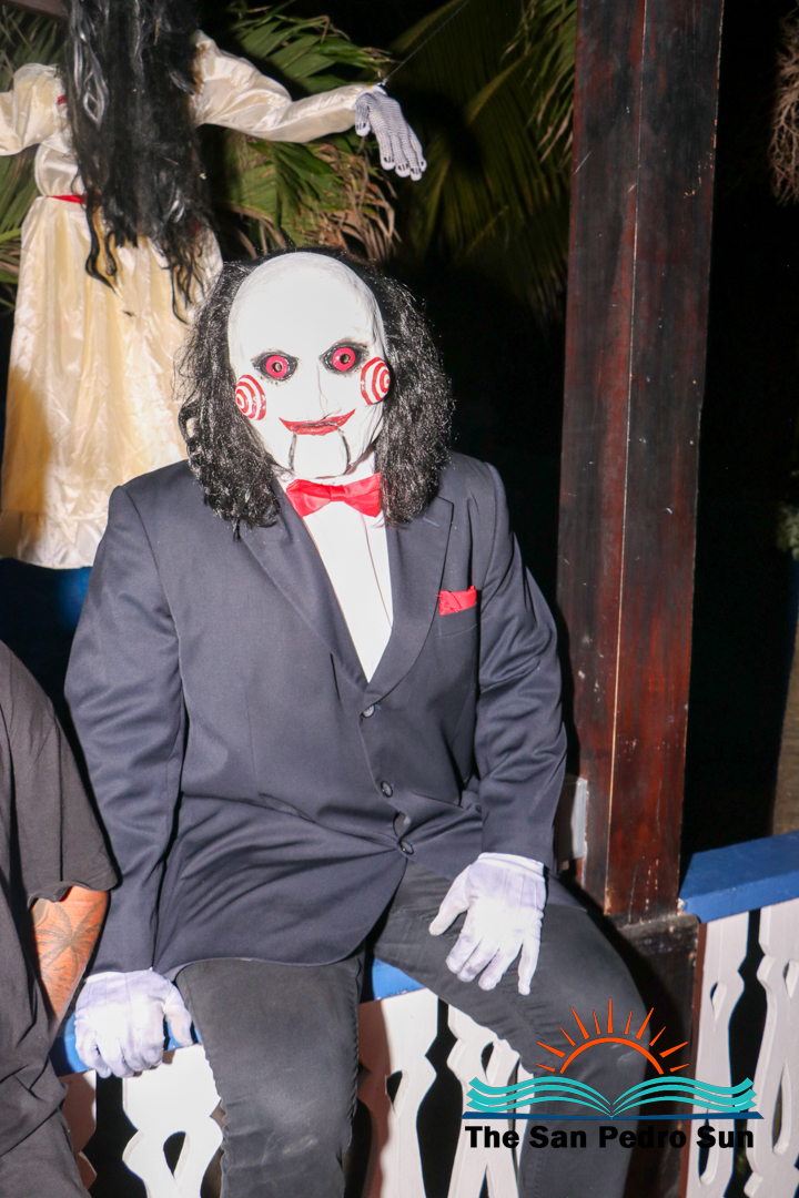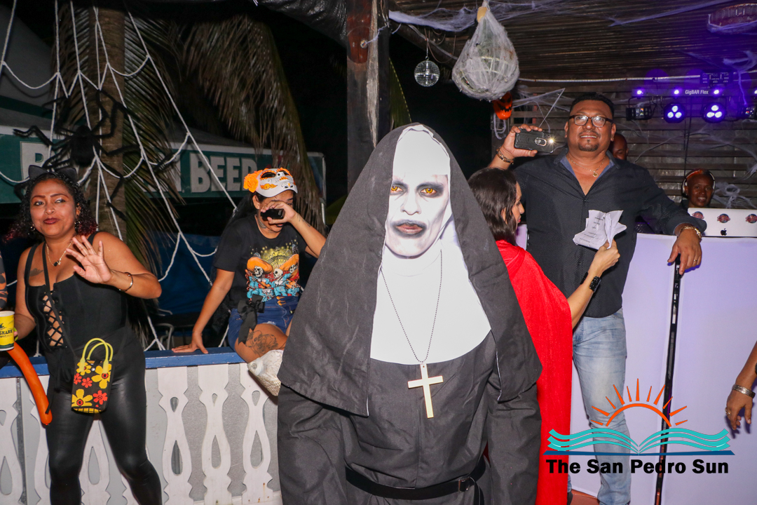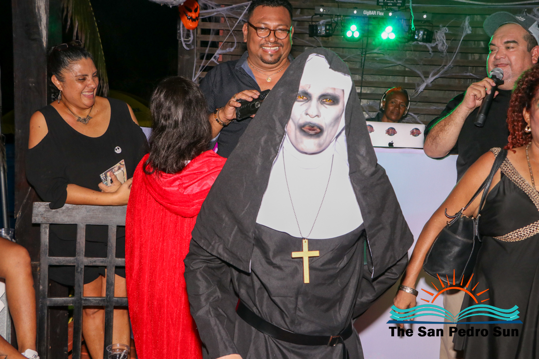 The night began with a lively parade of contestants, each showcasing elaborate and imaginative costumes to impress the audience and judges. Categories for the competition included Scariest, Crowd’s Favorite, Best Group, Best Makeup, Best On-Stage Performance, Holiday Hotel Manager’s Favorite, La San Pedrana Manager’s Favorite, Funniest, Lisa’s Favorite, Best Clown, Sexiest, Most Elegant, and Most Creative. Prizes ranged from the $1,000 cash award for the Most Creative Costume to private sailing adventures for twelve persons for the Best Group, along with Tropic Air flights, hotel stays, cases of Belikin beer, and numerous gift certificates.