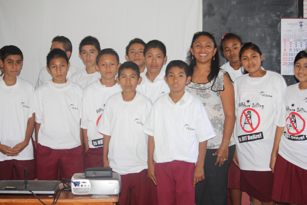 Press Release – Oceana – January 21, 2012 – The standard six and five students of Guinea Grass Village, Orange Walk hosted Oceana’s VP Audrey Matura Shepherd at a special lecture on Belize’s Marine Ecosystem on Thursday, January 20, 2011. The event organized by the school was to allow the students to learn more about the wonders of Belize’s marine resources. The over 60 students where shown videos taken of Belize’s marine creatures and were given a talk about the importance of our marine resources during a lecture entitled From Coast to Ocean.