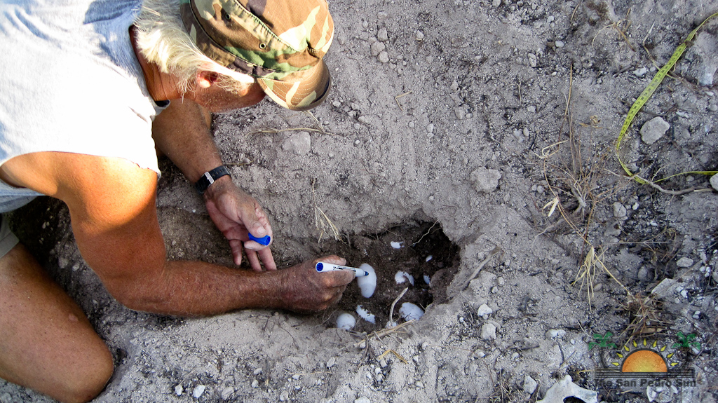 Finally, several eggs from recovered nests were already cracked. These eggs, estimated by band width to be approximately three weeks old, were collected but not counted as viable. We believe these eggs cracked during the laying process, which indicates thin shells. This could be due to toxins ingested by the adults, much like DDT effects the egg shells of the endangered California Condors.