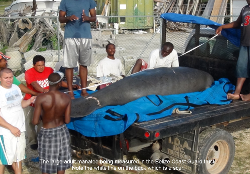 The Belize Coast Guard generously provided a truck and transported the manatee to the Manatee Rehabilitation Centre in Sarteneja, Corozal. There it will receive around-the-clock care from Wildtracks and many volunteers.
