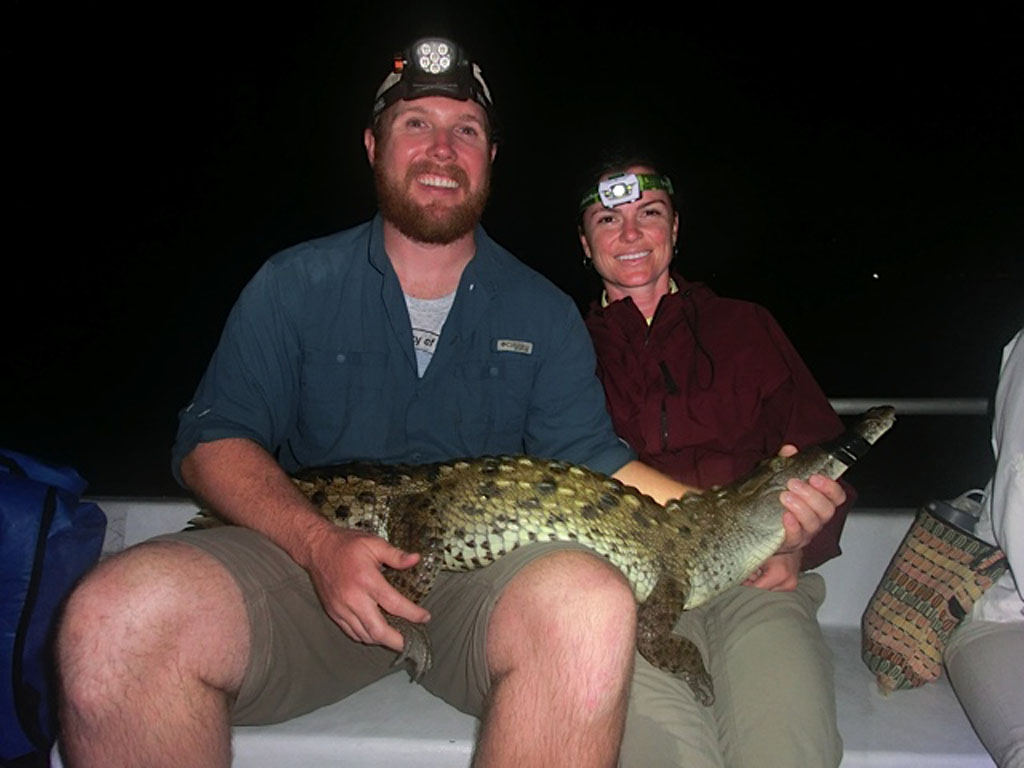 On our honey moon to Belize I didn’t want my wife, Stacia, and I to have a typical Belizean experience. Instead I set out in a search for wilder activities. Our passion for the wilder side of life led us to Vince and Cherie, the founders of American Crocodile Education Center (ACES). The excitement started on our first night in San Pedro when we were invited to join Vince, Cherie and Evan on a mission to set a crocodile trap for a troublesome and large crocodile. The night did not end there; we followed by heading to relocate a crocodile that had previously been captured. The excitement of capturing a crocodile in an enclosure and then having to relocate it further up north to an area not inhabited was exhilarating, not to mention that we had a croc lying on our laps. On our way to the area they choose to relocate the croc the cart broke down. Thankfully Carts Belize came to our rescue and we are absolutely grateful to them for that.