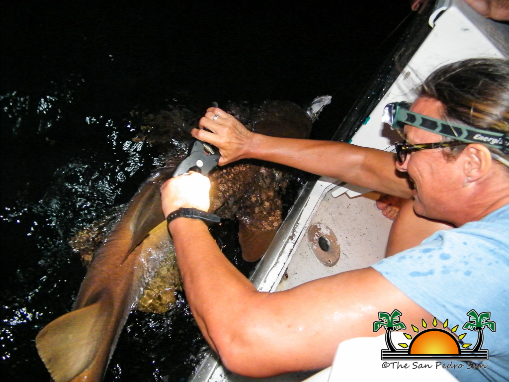 The San Pedro Sun’s Jorge Aldana was invited by Dr Graham to witness the launching of the initiative off Ambergris Caye on the evening of Tuesday, January 15th where he also had the opportunity to assist the crew in tagging sharks. A healthy male Nurse Shark measuring 204CM (6.69ft) and tagged as number 103 was officially named “Jorge” after the senior staff reporter who has a passion for environmental reporting.