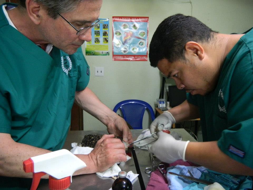 According to Miguel Alamilla, Marine Biologist and Manager of HCMR, the turtle was taken into captivity and placed under observation, and as it grew, the flipper seemed to create a problem for the turtle’s mobility. “It has been in our care for over a year. Over time we noticed it wasn’t healing and we eventually decided to amputate the flipper since it was getting bigger but it couldn’t dive. We had a visiting vet who recommended the amputation,” stated Alamilla. The vet that recommended the amputation is Dr. Paul Calle. Dr. Calle is the Director of Zoological Health for the Wildlife Conservation Society’s main office in the Bronx, New York, USA.