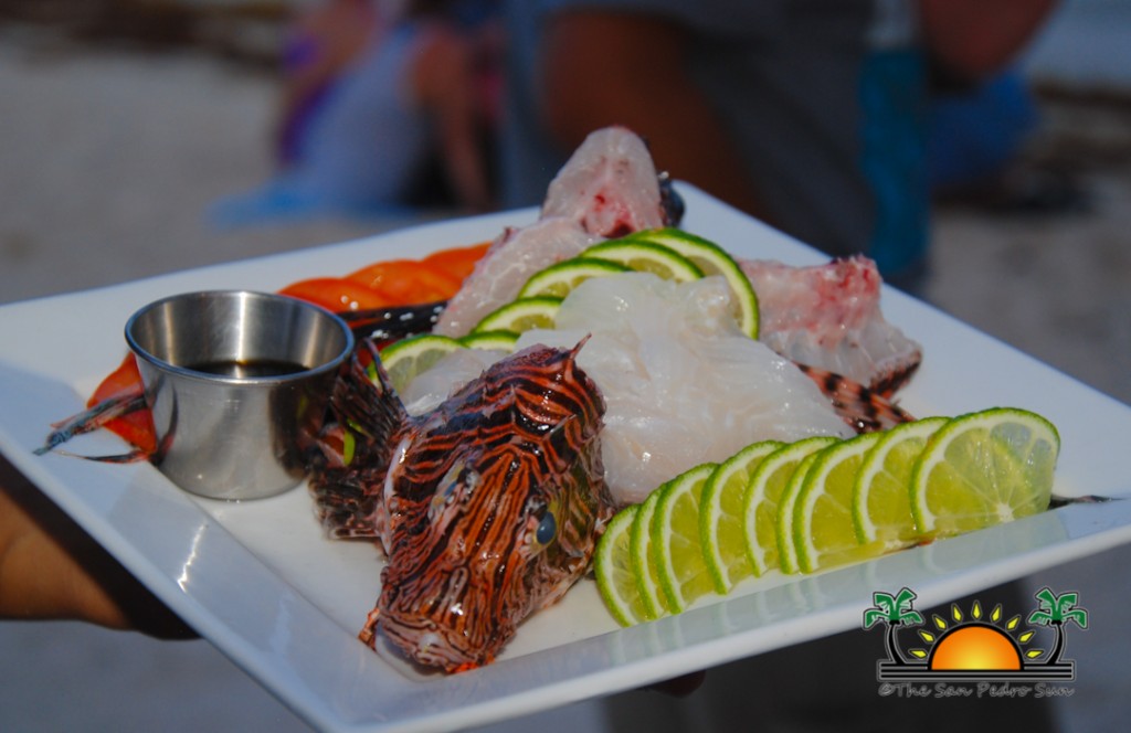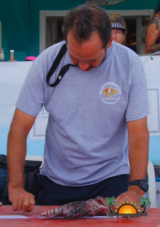 Hol Chan Marine Reserve had also organized a lionfish filleting contest. Five persons were tasked to fillet as many lionfish as they could in 10 minutes. Toshiya Tsujimoto of JYOTO Japanese Restaurant and Sushi Bar was tasked to inspect the fillets, to ensure it was restaurant quality. After a moment of deliberation, Tsujimoto declared Christopher Emanuel Mejia as the first place winner ($250 cash) and Modesto Gutierrez in second. He won a $100 bar tab from Carlo & Ernie’s Runway Bar.