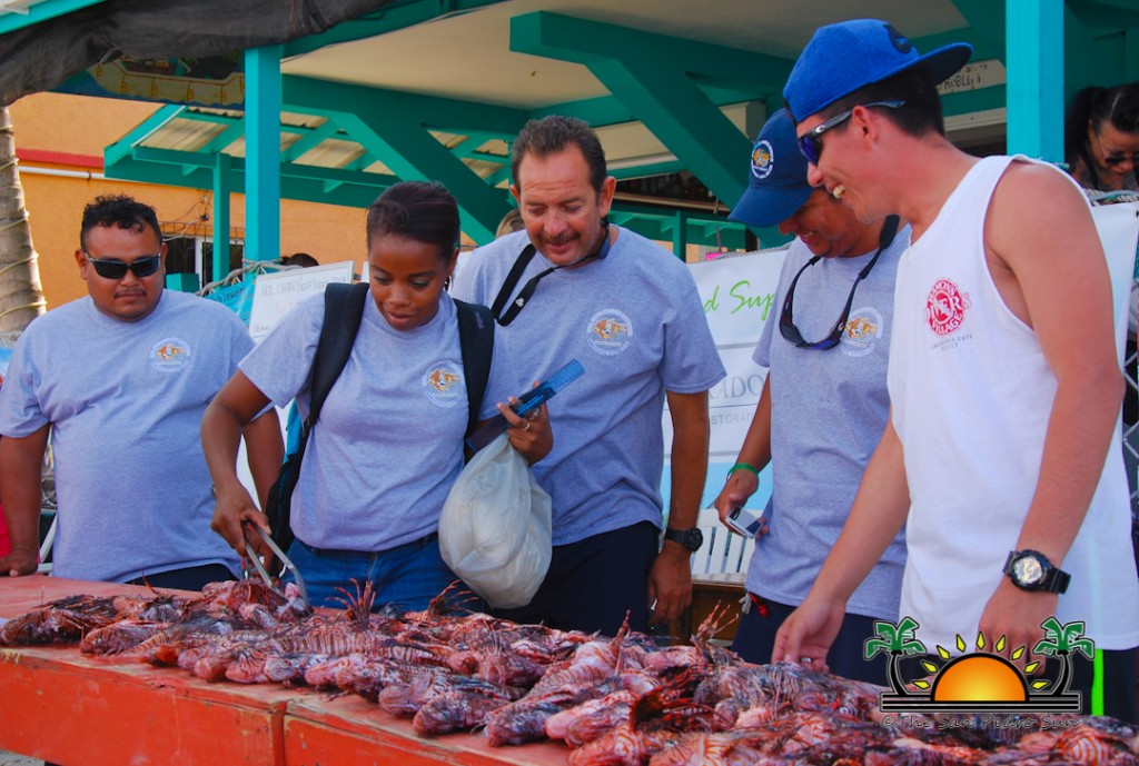 Estel’s Dine by the Sea hosted a Lionfish Tournament on Friday, May 12th, as part of the 12th annual Reef Week celebration. Not only was it an opportunity to win great prizes, but the tournament also raised awareness on the invasive species. Lionfish are an invasive species who are voracious eaters and have no natural predator. They are a threat to our marine life as they continue to gobble juvenile crab, lobster, conchs, and fish. Four registered teams and one fun group managed to capture a total of 554 lionfish. Amigos Del Mar, Ramon’s Village, C-Monkey, Belize Diving Adventures, and Passion Kite Belize (fun team) headed out to the sea, and by 3PM, began arriving with coolers full of lionfish. After all teams had come onshore, their catch was counted, and the largest and smallest lionfish were measured.