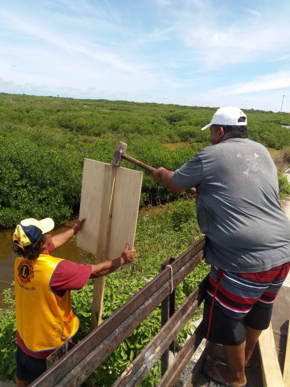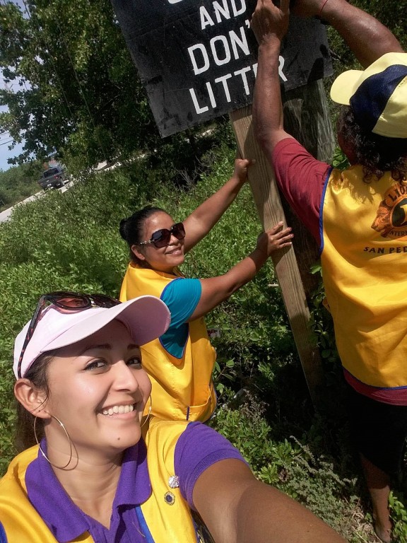 According to the San Pedro Lions, the project was initiated by the former San Pedro Lions Queen and Leos’ member, Solani Graniel last year. The project was completed this year by the Leos with assistance from the Lions Club. In observance of Lions World Service Day, members of both clubs took to the streets on Sunday, October 8th to install the anti-littering signs north of the Sir Barry Bowen Bridge as far up as four miles. The aim is for these signs to remind persons traveling in the area to refrain from disposing garbage along the streets or in the nearby waterways.