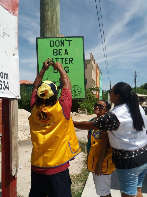 Improper garbage disposal has long been a problem across Ambergris Caye. Throughout the years, several organizations have launched clean-up initiatives to bring awareness to land pollution and the effects it has in our environment. As improperly disposed trash continues to accumulate on the island, the San Pedro Lions Club along with the San Pedro Leos Club is making an effort to encourage people not to litter by placing signs on Northern Ambergris Caye.