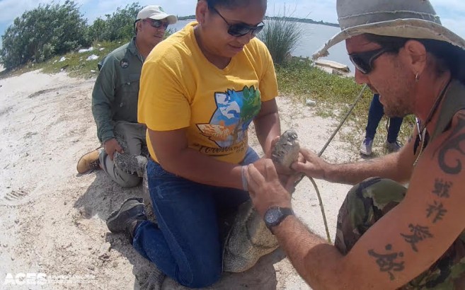 The American Crocodile Education Sanctuary (ACES) welcomed three new Wildlife Officers from the Belize Forest Department on Thursday, November 2nd, to our yearly governmental Crocodile Training Day. Wildlife Officers, Ms. Shanelly Carrillo, Ms. Kristy Tellet, and Mr. Edwardo Pott, traveled from across the county to Ambergris Caye for a full day of hands-on crocodile training with ACES.