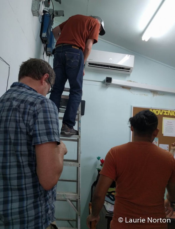 Thanks to Kenyon College from Ohio, USA more schools on the island could possibly receive solar panels. On Friday, January 12th Kenyon College Professors, Doctor Robert Alexander and Doctor Jim Skaon, alongside with retired entrepreneur Doug Karl came to the Ambergris Caye to provide solar panel assessments for schools on the island. In addition, they also provided check-ups on last year’s schools, as this is not the first time Kenyon College has installed solar panels in San Pedro Town. In March 2017, solar panels were installed at Ambergris Caye Elementary School (ACES) and Brighter Tomorrow Preschool (BTP). Last year solar panels were purchased via donations from Tacogirl.com, Denise Ryan, Amanda Syme, Pepper Counter and Sarah Reza.