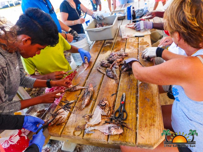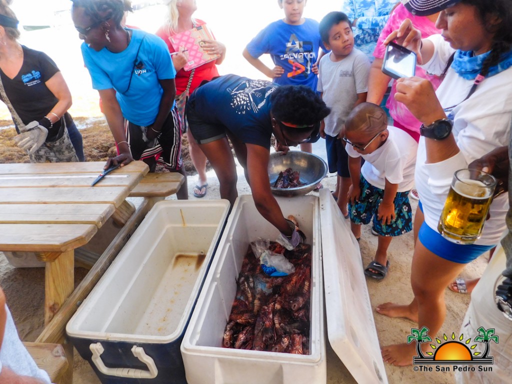 At the end of the day when all the catches had been counted and weighed, the respective winners were announced. The award for “most lionfish caught through scuba diving” went to San Pedro’s Sagebrush Team, who caught a total of 121 lionfish. The win for the “most lionfish caught via free diving” was French Angel, who caught a total of 115 lionfish. The prize for the “smallest lionfish” went to Caye to Happiness for catching a fish of only one and a half inches in size, while, the prize for the “largest lionfish” went to Scuba Sensation, for an 11-inch fish. Majority of the teams decided to donate all of their catch to Barrier Reef Sports Bar & Grill to serve up.