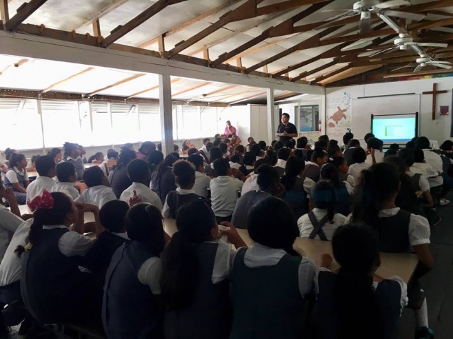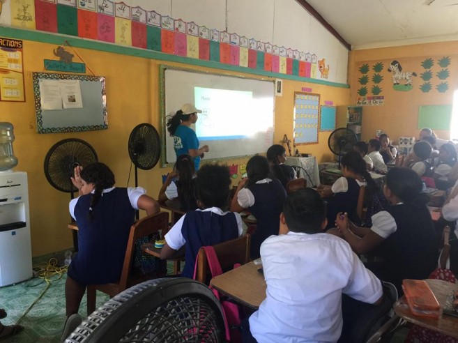 The program began on Monday, October 1st and is designed to provide educational sessions to the upper division students of the different primary schools on the island. The presentations are based on scientific facts on the negative effects of plastic pollution, how it affects the environment, how it affects us individually, and what we can do to reuse, reduce and recycle on the island. At the end of each presentation, students are asked questions to see what they learned, and they receive a bamboo straw to motivate them to stop using plastic ones.