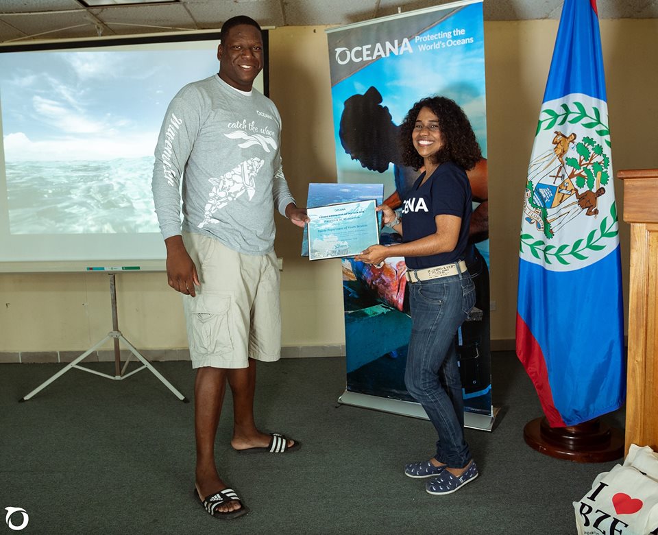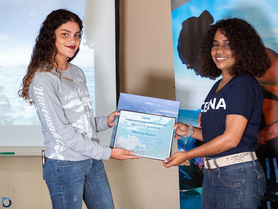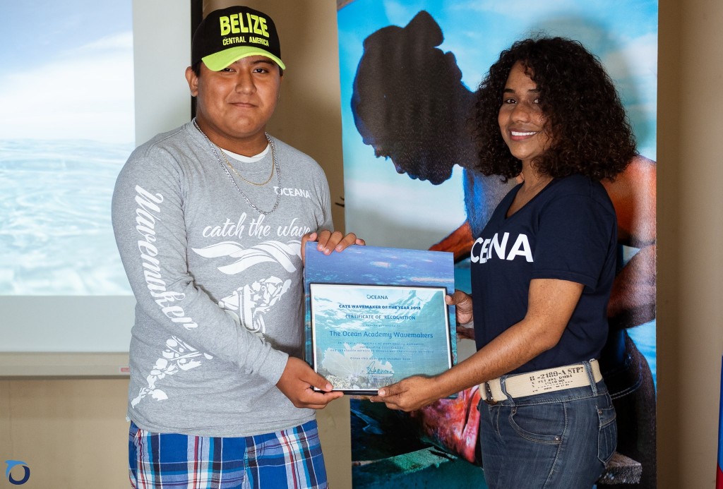 During the meeting, several Wavemakers were awarded certificates of appreciation for their sensational above and beyond support for Oceana’s campaigns and initiatives over the past year. Among them were Kariel Slusher from the Belize District; the Department of Youth Services (DYS) and the Health Education and Community Participation Bureau (HECOPAB) from Corozal; the Ocean Academy Wavemakers Club from Caye Caulker; Arren Andrews and Whitney Majano of the Stann Creek District, and the Department of Youth Services (DYS) in Punta Gorda. Oceana was also proud to present a national award when we recognized Ms. Abigail Parham of Stann Creek District as the 2018 Wavemaker of the year.