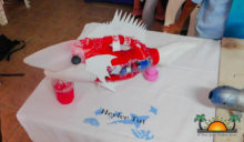 From 8AM to 12PM, island residents stopped by to see the students’ imaginative creations fashioned from recycled materials they found on the island. The students created fish, gardens, towers and even library stands using discarded materials.