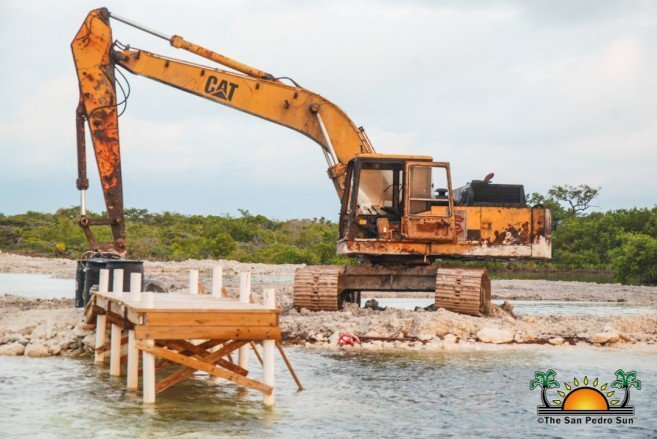 An unauthorized dredging project on the lagoon side of San Pedro Town has received a stop order from the Ministry of Natural Resources and Agriculture via the Mining Unit. Concerned citizens claimed that heavy machinery, including a Caterpillar excavator, had allegedly been used to construct an approximately three-mile channel heading north. The Department of Environment (DOE) confirmed to The San Pedro Sun that the proprietors, believed to be Bob Dhillon and David Mitchell, did not have the required permits for such an activity and the persons carrying out the excavation were verbally ordered to cease operations until an inspection is conducted. A team from DOE is expected to arrive on the island to inspect and verify the nature of the questionable project.