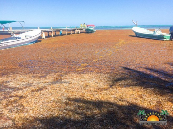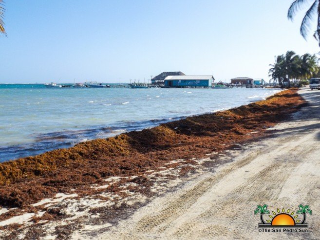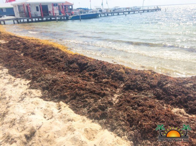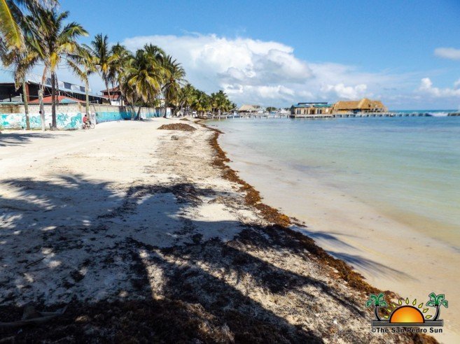 After weeks of constant accumulation of Sargassum on the eastern beaches of San Pedro Town, the Sanitation Department at The San Pedro Town Council (SPTC) is reporting a decrease in the influx of this seasonal seaweed on the island. Over the past weeks, large areas of the Boca del Rio strip were inundated with large amounts of Sargassum affecting many business establishments along the coastline. Beach hotels have also been affected. However, they have opted to set barriers in front of their beaches in an attempt to keep their areas free of the seaweed.