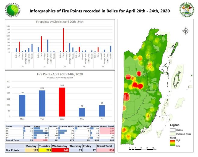 The public is hereby advised on the situation with wildfires across the country and updated on the work being done by the Government of Belize. The Forest Department, the Department of the Environment (DOE) and other agencies including the Fire Department, the Belmopan City Council, the San Ignacio Town Council, and ranger volunteers such as the Southern Wildfire Group, continue to collaborate to actively address the ongoing fires.