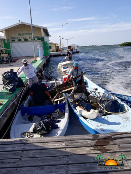 The meeting point was the Boca del Rio beach park, from where the cleaning began. The participants were accompanied by the Belize Coast Guard as they started the cleaning raking the lagoon floor. According to Abner Bacab, one of the organizers, they collected plastics, metals, fishing lines, glass bottles, wood, boards and many other items thrown into the waters. “It was indeed a great day for our mangroves, marine resources, waterways, Caribbean Sea and environmental conservation of our community,” said Bacab. At the end of the activity, a dump truck provided by the San Pedro Town Council was filled with rubbish fished off the lagoon. Most of the garbage is suspected to be from the nearby households/residents living along the waterway.