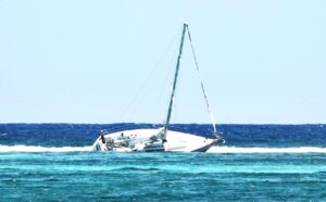 An update from the Department of Environment (DOE) on the sailboat named ‘Ramblynn’ still stuck on the reef in the Tranquility channel area off the north coast of Ambergris Caye revealed that there is no damage to the coral reef. The vessel has been there since March 17th and reportedly only hit solid rock. The next step from DOE and the Belize Port Authority is to find a safe way to remove it before it could cause any damage or obstruction to other navigators.