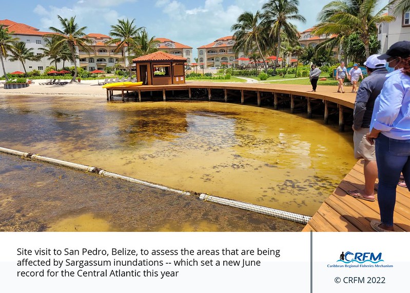 From there, the mission traveled to Belize, where the representatives of the CRFM and PFR met from June 21-26, 2022, with officials of government ministries responsible for Tourism, Agriculture, and Blue Economy, as well as CARDI, the University of Belize, and members of the private sector. While in Belize, the CRFM and PFR mission also traveled to the island of San Pedro for a site visit, to assess the areas that are being affected by Sargassum.