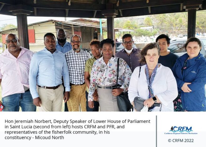 Subsequently, the mission traveled to Saint Lucia, where they also met with Hon Jeremiah Norbert, Deputy Speaker of the Lower House of Parliament, and other senior government officials and individuals from the private sector, including the Caribbean Network of Fisherfolk Organisations (CNFO) from June 11-14, 2022. They met with representatives of Sir Arthur Lewis Community College, in addition to community leaders in some of the heavily impacted coastal communities in Vieux Fort, Micoud and Dennery.