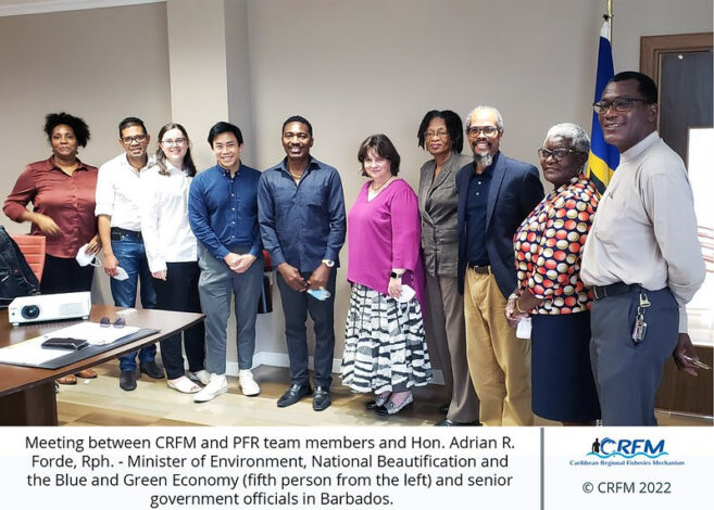 The first leg of the mission took the CRFM and PFR teams to Barbados, where they met with Hon. Adrian R. Forde, Rph. – Minister of Environment, National Beautification and the Blue and Green Economy and senior Government officials with responsibility for Blue Economic Growth and Fisheries, individuals from the private sector, and representatives of the Caribbean Agricultural Research and Development Institute (CARDI), the University of the West Indies’ Centre for Resource Management and Environmental Studies (UWI-CERMES), the Food and Agriculture Organization (FAO), and the United Nations Development Programme (UNDP), between June 8-10, 2022.