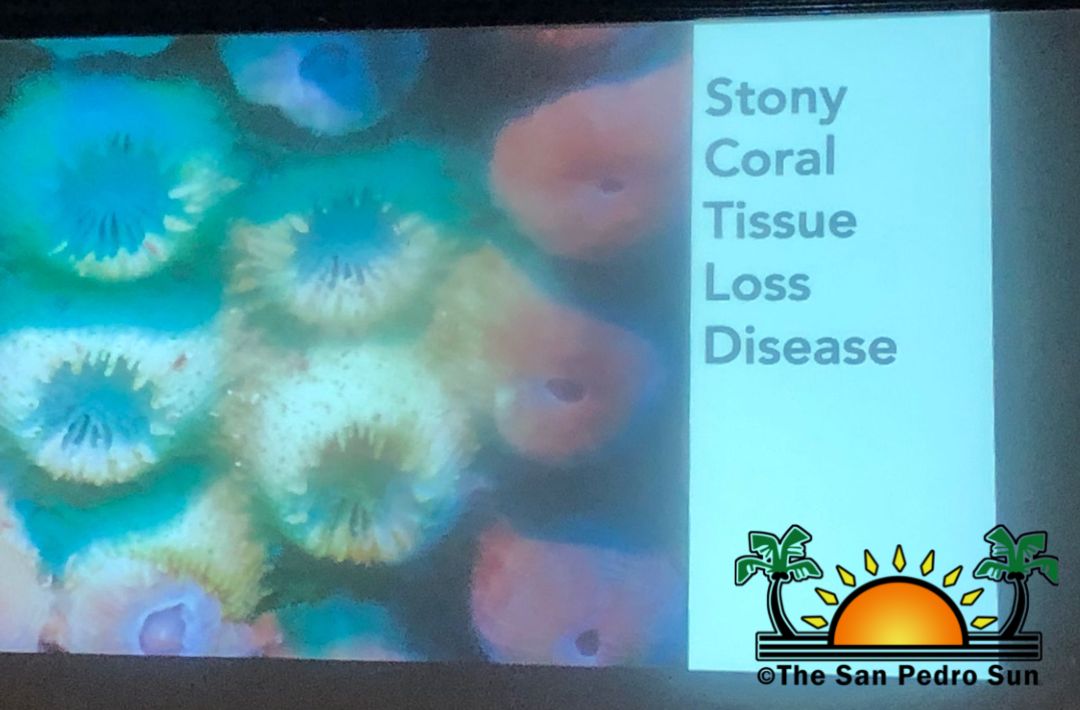 A presentation over the weekend in San Pedro Town, Ambergris Caye, was held to raise more awareness about the Stony Coral Tissue Loss Disease and other conditions affecting the Belize Barrier Reef. The first informative session was on Friday, July 15th, at the San Pedro Town Council conference room and was facilitated by the Fisheries Department and other partner organizations. Tour guides and operators eager to learn about the diseases killing coral reefs and what is currently being done in Belize to tackle the plagues attended the presentation.