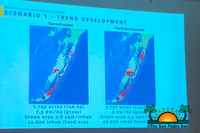 The IDOM team presented in early July in San Pedro at the Sunbreeze Hotel conference room. They hoped to see as many islanders as possible to discuss their findings and consult with the attendees. However, only two islanders involved in the tourism industry attended the gathering. The diagnostic conclusions indicate that the urban growth of Ambergris Caye is 3.1% every year, with the main areas showing rapid development in northern Ambergris Caye and the Secret Beach area. With an estimated population approaching 20,000 as per IDOM’s project, planning for future development on Ambergris Caye is crucial. The urban footprint is estimated to span around 1,800 acres, with the growth identified more than eight miles down the coastline and extending seven miles on the west side from the town core.