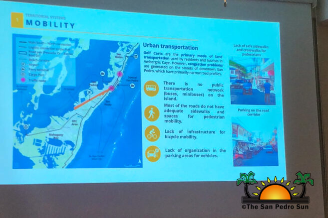 Another aspect of the study points out the lack of public transportation in San Pedro. Golf carts are the primary mode of land transportation used by locals and tourists alike. As a result, and a lack of control, traffic congestion has become an issue in downtown San Pedro which has narrow streets. The mobility issues observed by the IDOM team also highlighted the lack of bicycle infrastructure, adequate sidewalks, and pedestrian spaces. There is also an issue with organization in the parking areas for vehicles.