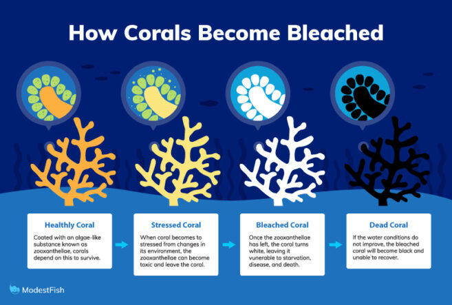 Coral bleaching has been reported on the corals in front of San Pedro, Ambergris Caye, within areas such as the Hol Chan Marine Reserve. They attribute these negative changes to recent weather temperatures that surpassed 30C (86F). Warmer waters can trigger coral bleaching, where the coral turns white as it expels the symbiotic food-producing algae living in its tissues. Prolonged bleaching events often cause corals to die from starvation, but they can recover if they reclaim their food source within a few weeks.