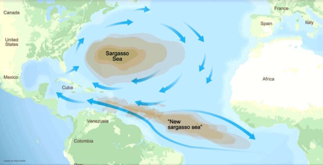 The presence of sargassum is the result of several factors. The central Sargasso Sea, located in a warm zone year-round north of the Atlantic Ocean, is regularly fed by nutrients from South America’s Amazon and Orinoco rivers and the African Congo. This provides an environment conducive to its continuous development. The Sahara dust and other elements also promote its growth. A massive second sargasso patch is also developing just north of South America and drifting west into the Caribbean Sea.