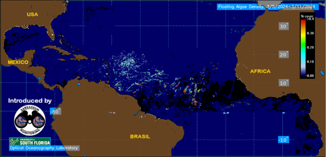 Sargassum results from several factors. The central Sargasso Sea, located in a warm zone year-round north of the Atlantic Ocean, is regularly fed by nutrients (and agricultural run-off) from South America’s Amazon and Orinoco rivers and the African Congo. This provides an environment conducive to its continuous development. The Sahara dust and other elements also promote its growth.