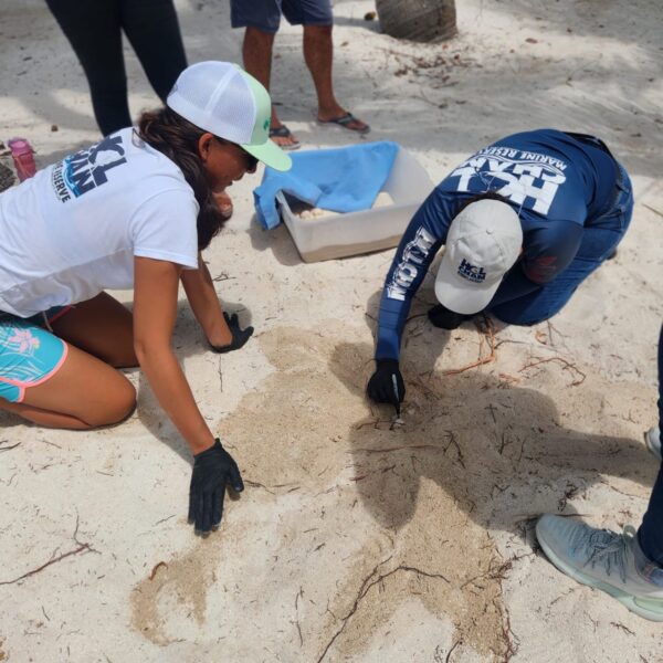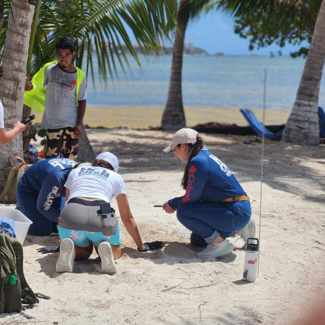 Following the inspection, the monitoring team spoke with the Clear Water Belize manager, who assisted them. They explained the importance of protecting sea turtle nests and highlighted the efforts of Hol Chan, which provides shelter for these nests. These initiatives are crucial for the overall conservation of this species.