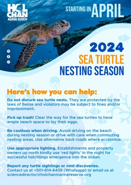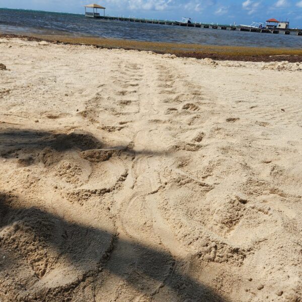 On Monday, May 6th, the Hol Chan Marine Reserve (HCMR) team received a report from Chris Summers via their official Facebook page. Summers is a collaborator with whom they have established a working relationship through Aces Wildlife Rescue. Mr. Summers shared a video of a fresh sea turtle crawl observed on the beach side of the property owned by Clear Water Belize. The HCMR team promptly responded to this notification and confirmed the presence of a nest upon investigation, marking the inauguration of Ambergris Caye Sea Turtle Season 2024.