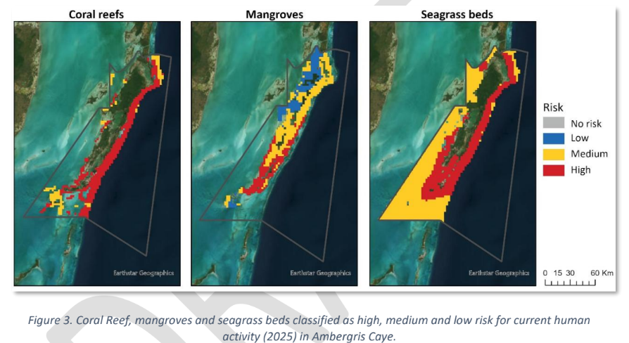 Ambergris Caye, home to approximately 15,500 residents and the vibrant town of San Pedro, relies heavily on tourism and fishing, its two main economic drivers. However, this prosperity has come with environmental costs. The updated guidelines classify much of the region’s coral reefs as “high risk,” citing development, tourism, and marine traffic impacts. Additionally, unchecked infrastructure expansion and dredging threaten critical ecosystems like mangroves and seagrass beds.