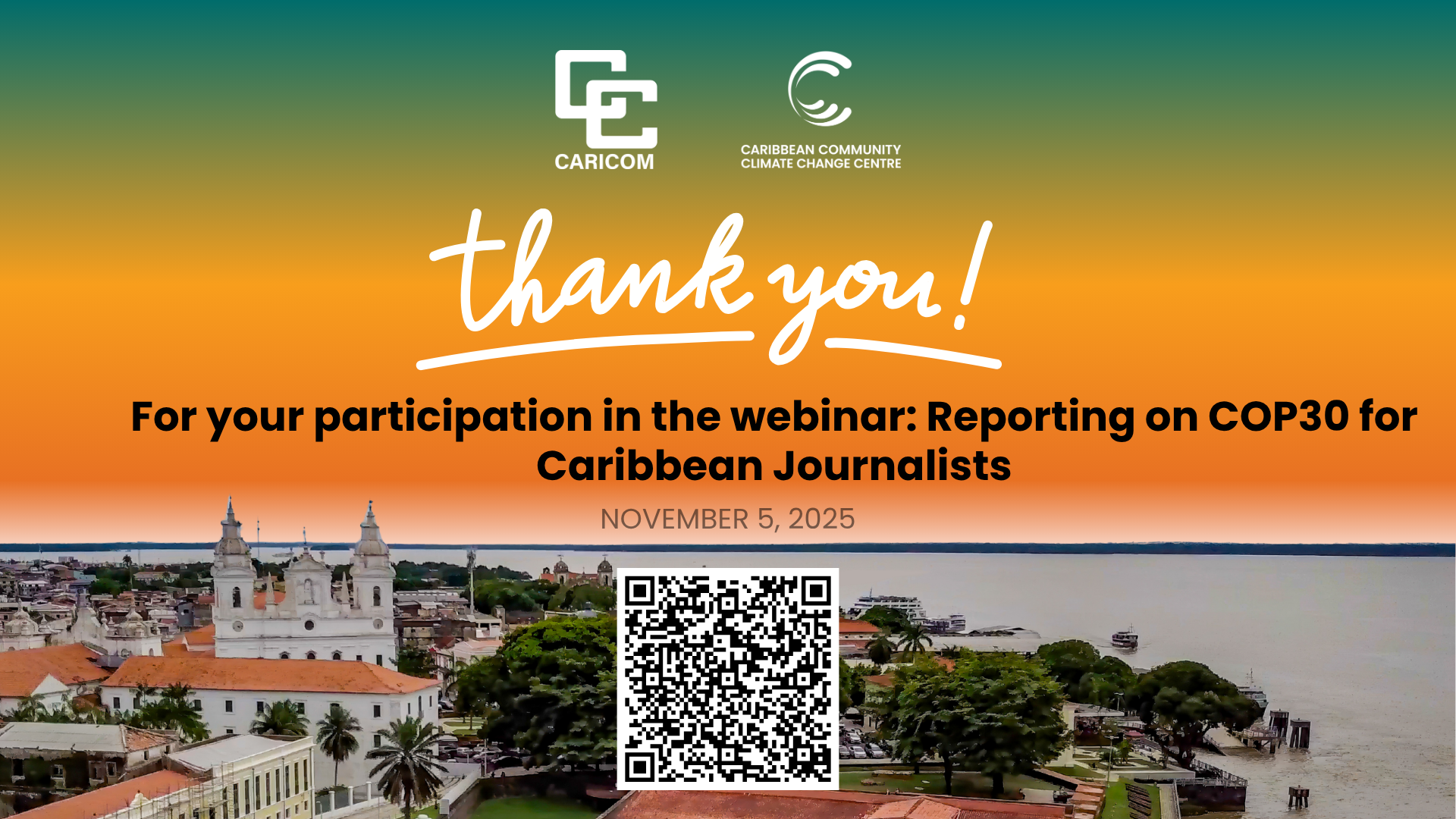 The webinar equipped journalists with insights into CARICOM’s climate priorities ahead of COP30. Featured speakers included Mr. Dike Noel of the CARICOM Secretariat; Dr. Colin Young, Executive Director of the CCCCC; and Ms. Amrikha Singh, Program Manager for Sustainable Development at CARICOM. They discussed regional themes, including just transition, loss and damage, climate finance, and adaptation strategies. Ryan Bachoo of Guardian Media Limited also shared techniques for effectively covering complex climate topics while maintaining journalistic integrity. The session underscored the media’s dual role as both informers and educators, capable of amplifying the Caribbean’s voice on the global stage.