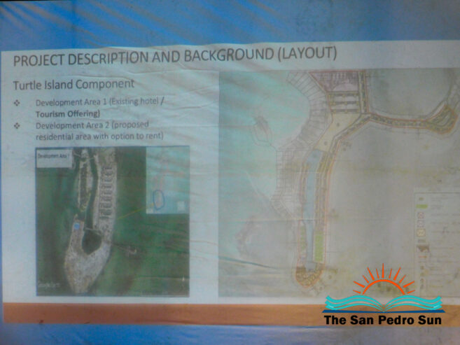 Consultant Dr. Abel Carrias of Sustainable Development Consulting Services presented the EIA findings. He explained that the project consists of two main components: Turtle Island and Private Island. “The section of the project known as Turtle Island is to the south of the property and is an existing tourism operation, which is not operating right now but has environmental clearance to operate,” he said. The current approved plan includes eight east-facing units, additional west-facing units, a restaurant, bar, and pool. Carrias said there is approval to construct 18 additional one-, two-, and three-bedroom units, along with other amenities that already have environmental clearance.