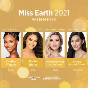 The pageant winners were announced at the end of the segment. Wagner was overwhelmed with emotion when she was declared the top winner- Miss Earth 2021. “My country has never placed at Miss Earth before, nor have we ever had an international crown. So right now, this is what we needed, and I am happy to represent such a gorgeous country,” she said. The others winners include Baitong Jareerat Petsom of Thailand, as Miss Earth Fire 2021; Romina Denecken of Chile, as Miss Earth Water 2021; and Marisa Butler of the USA as Miss Earth Air 2021.