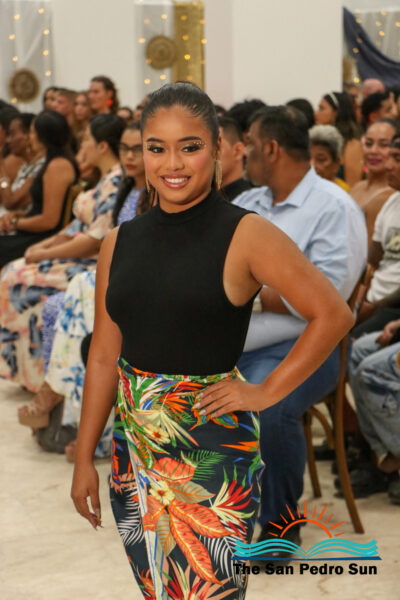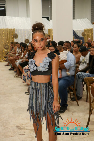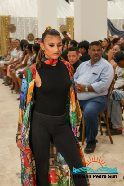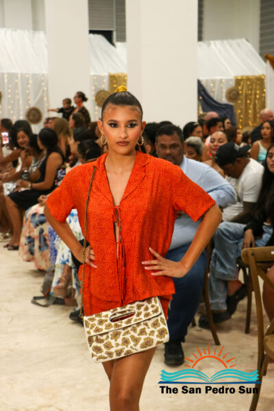 The event opened with tropical-print creations from Caye Caftans, adding a colorful start to the evening. “Caye Caftans is a Belize-based fashion brand known for its 100% handcrafted tropical-print designs that celebrate island style while giving back to the community. The first segment featured artisan handbags designed by Emelio Perrera and handmade beaded accessories by Lailene Reyes, designer of Beaded Luks. The second segment showcased Sands Boutique outfits featuring contemporary, island-ready styles. Subsequent segments included upcycled denim transformed into wearable art by Liagabi, and bold, beach-inspired accessories from Taboo Treasures by Toucan.