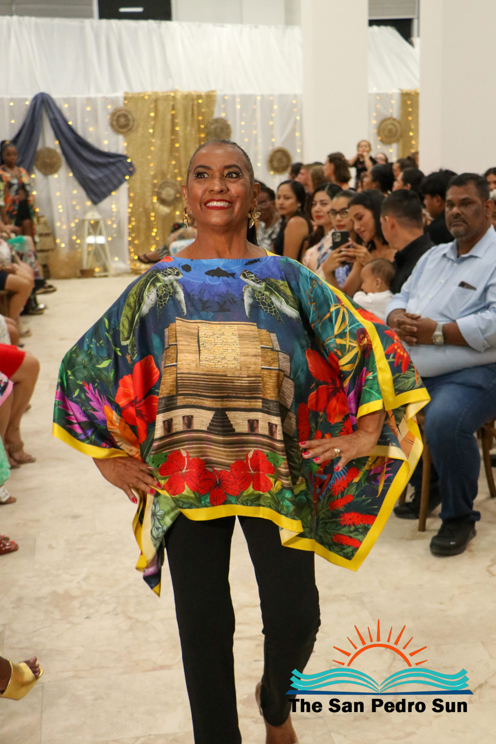 The event opened with tropical-print creations from Caye Caftans, adding a colorful start to the evening. “Caye Caftans is a Belize-based fashion brand known for its 100% handcrafted tropical-print designs that celebrate island style while giving back to the community. The first segment featured artisan handbags designed by Emelio Perrera and handmade beaded accessories by Lailene Reyes, designer of Beaded Luks. The second segment showcased Sands Boutique outfits featuring contemporary, island-ready styles. Subsequent segments included upcycled denim transformed into wearable art by Liagabi, and bold, beach-inspired accessories from Taboo Treasures by Toucan.