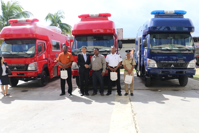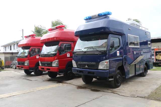 Belmopan. January 11, 2016. The Government of Belize received three (3) command vehicles donated by the Government of Japan, through their Non-Project Grant for Industrial Products. These three (3) vehicles will be utilized by the Police Department, Belize National Fire Service and the National Emergency Management Organization (NEMO), as on-site command centres during emergency situations.