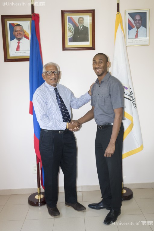 His Worship Khalid Belisle, Mayor of Belmopan, made a courtesy call on the new President of the University of Belize, Professor Clement Sankat on Wednesday, 5th April at the University’s Main Campus in Belmopan. This was a familiarization meeting allowing the two leaders to discuss how best the Belmopan City Council and the University can work collaboratively together in such a way to simultaneously contribute to the Development of the Municipality, the University and the nation of Belize as a whole.