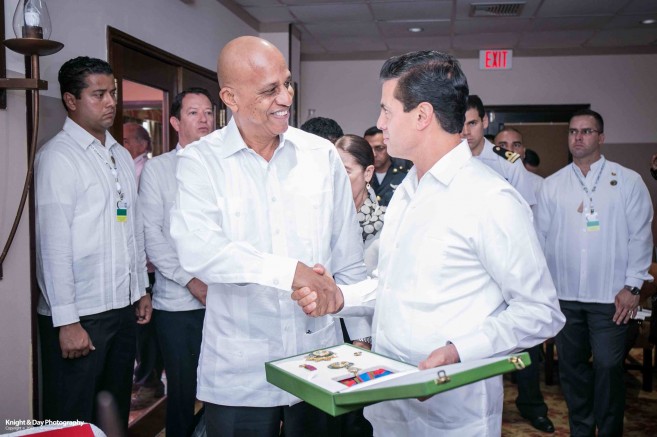 Mexican President Enrique Peña Nieto arrived today, October 25, to participate in the IV CARICOM Mexico Summit. On hand to receive him was the Minister of Foreign Affairs, the Honourable Wilfred Elrington.
