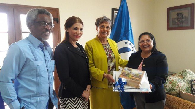 The President of PARLACEN was accompanied by the Honourable Silvia Garcia Polanco, the Vice President of PARLACEN in Dominican Republic, the Honourable Sidney Orlington Francis, Vice President of PARLACEN in Nicaragua, and Ms. Beatriz Herrera, Director of Foreign Affairs of PARLACEN’s Board of Directors, in Guatemala. Also present at the meeting with the Honourable Madam Speaker was Mrs. Clarita Pech, Deputy Clerk to the National Assembly.