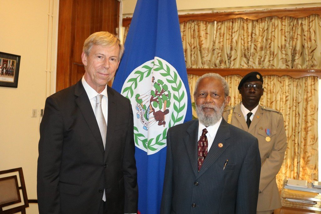 Belmopan. May 20, 2019. Three ambassadors and a high commissioner accredited to Belize presented their letters of credence to the Governor General of Belize H.E. Sir Colville Young this morning at the Belize House.