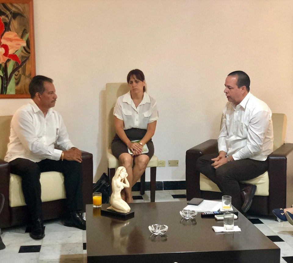 The Honourable Pablo Marin, Minister of Health, arrived in Havana, Cuba on June 16, 2019, to meet with his counterpart Minister Jose Angel Portal Miranda. They assessed the current state of cooperation and exchanged ideas on how to improve the work programme between both countries. He presented Minister Portal with a special plaque commemorating 28 years of continuous collaboration.