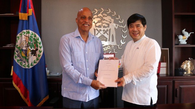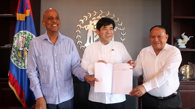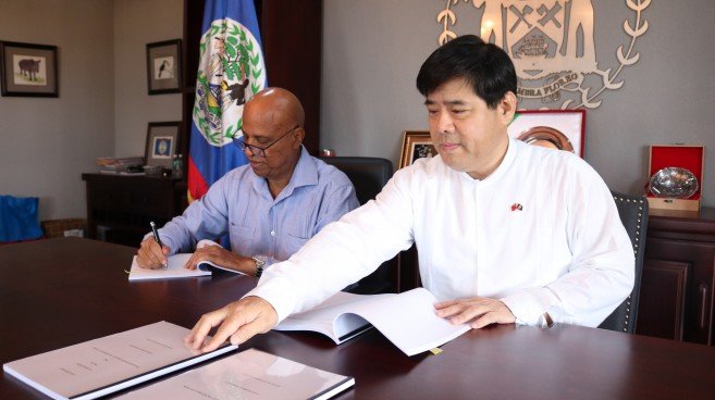 Witnessing the signing was His Excellency Remus Li-Kou Chen, Ambassador of the Republic of China (Taiwan) to Belize and the Hon. Rene Montero, Minister of Works of the Government of Belize.