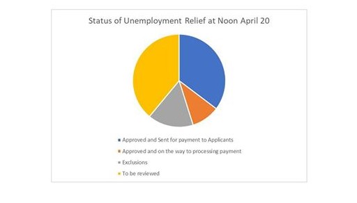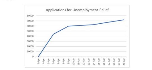 As of April 20, 2020, a total of 72,213 applications have been submitted since the Unemployment Relief Program was opened to accept applications on April 3, 2020. This includes some of the applications submitted via hard copy, which have begun to be entered into the online portal.