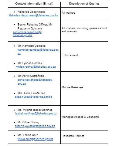 i. Completed application form for new entrants (available for download on the Facebook page of Fisheries Department and www.fisheries.gov.bz),
