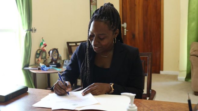 On July 22, 2020 at the Belize House in Belmopan, Mrs. Deshawn Arzu Torres was sworn-in as the chair of the Integrity Commission for a second term by the Governor General H.E. Sir Colville Young.